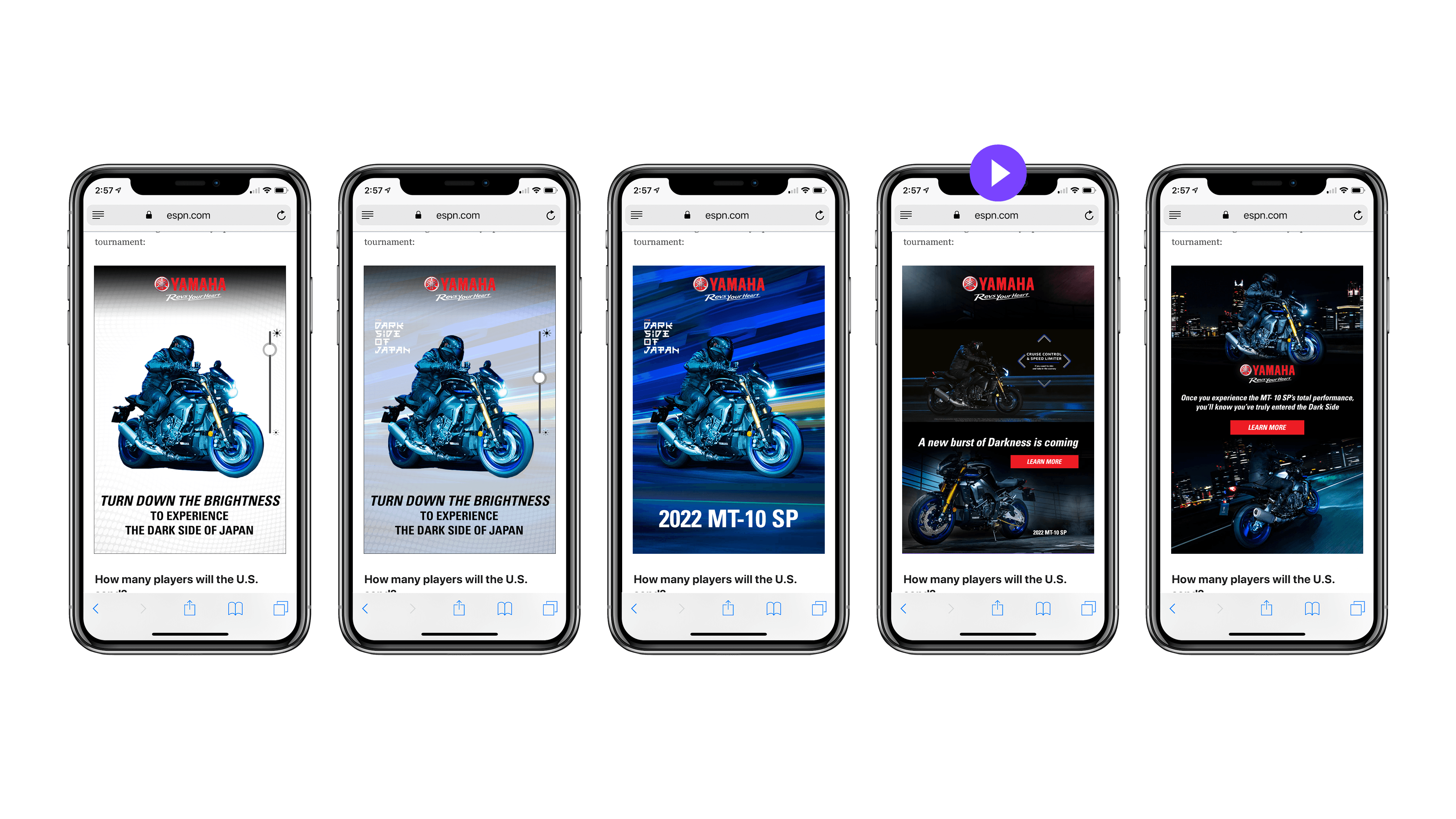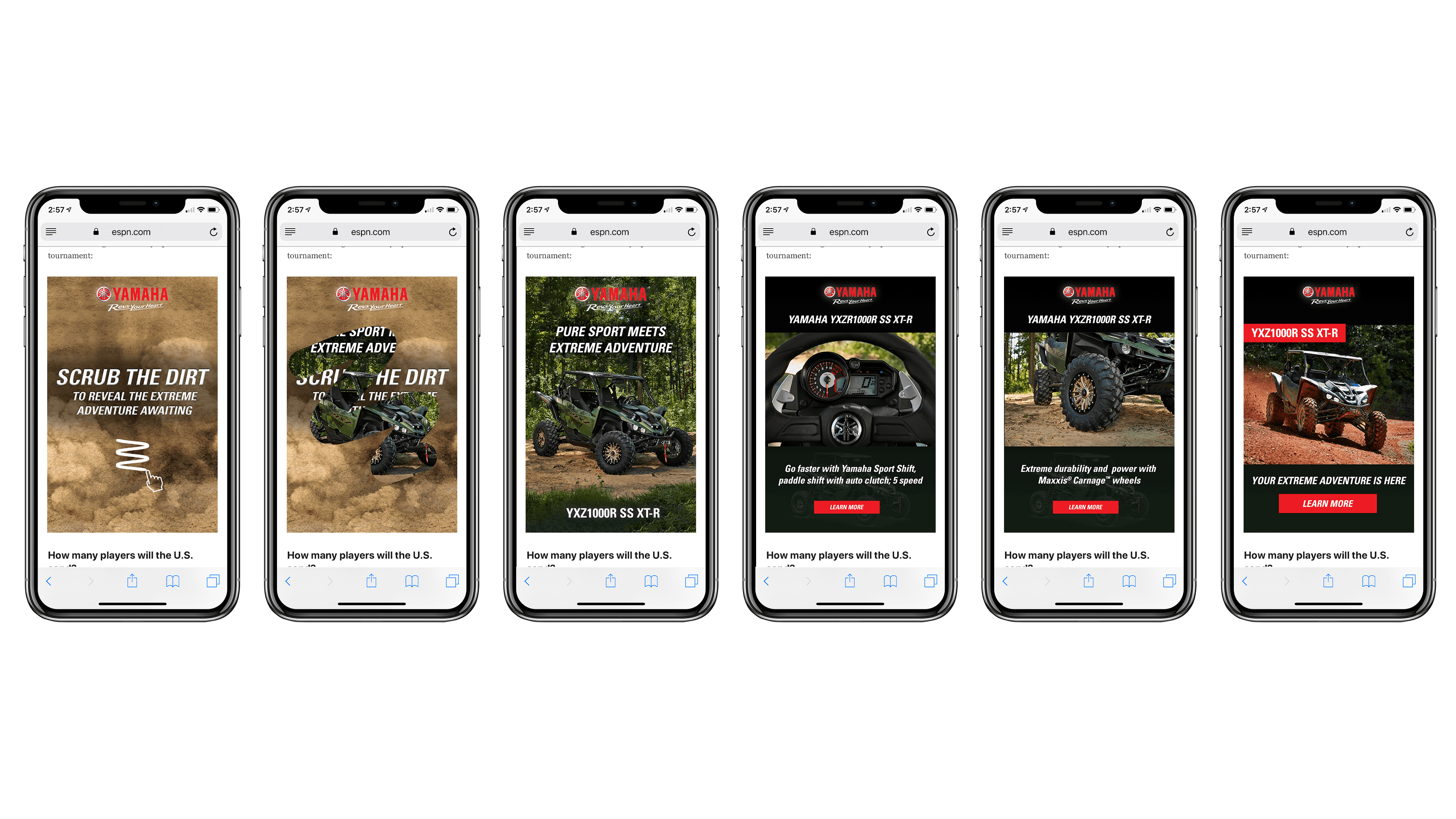 Since Yamaha was a reoccurring partner of Adludio, our team wanted to continue bringing innovative units. I designed several ad units that highlighted YXZ1000R, MT-10 SP, Ténéré 700 models to showcase the range of our ad unit offerings and design directions.